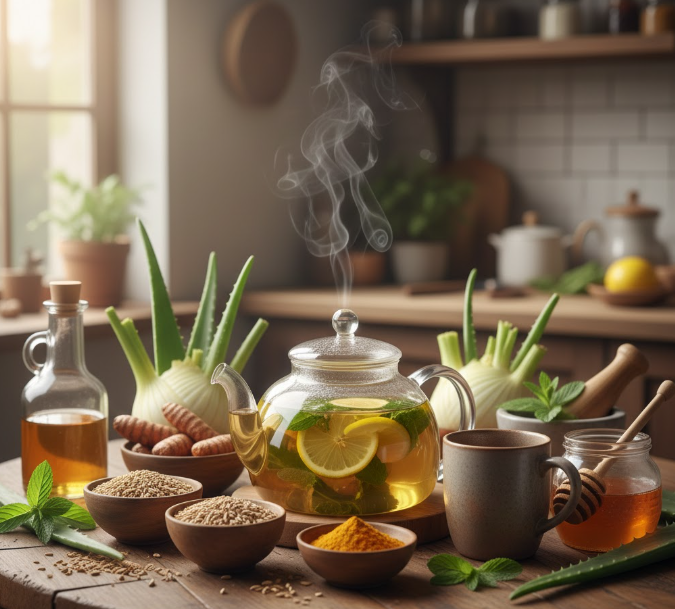 For Heartburn: Aloe vera juice + smaller meals + chamomile tea